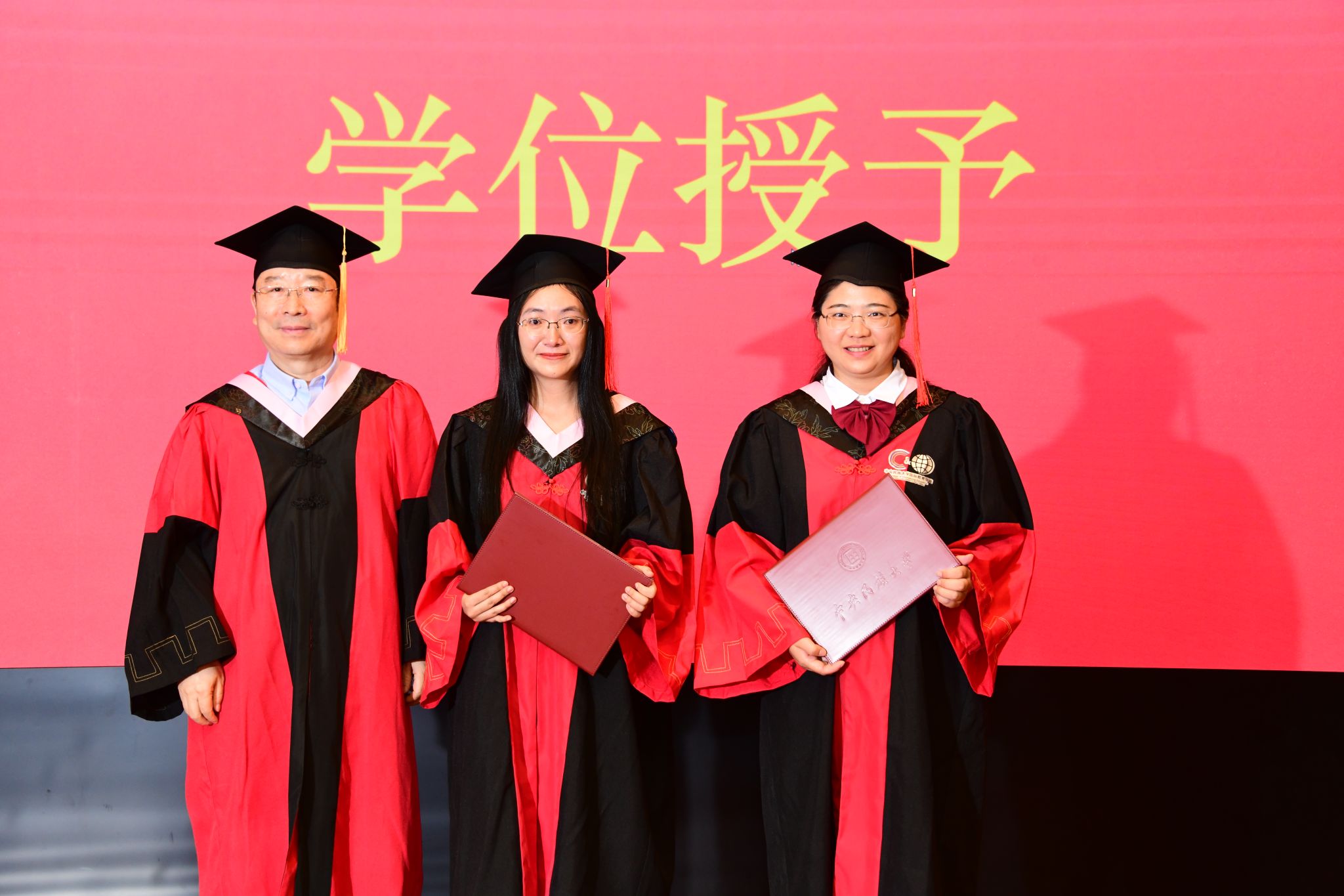 最激动人心的学位授予仪式环节,导师们依次上台为毕业生拨正流苏、颁发证书。吴应辉、刘玉屏、陈天序等导师亲手为学子们举行“加冕”礼。每一次流苏的拨动,都伴随着掌声与祝福,标志着学子们学有所成,正式开启人生新篇章。