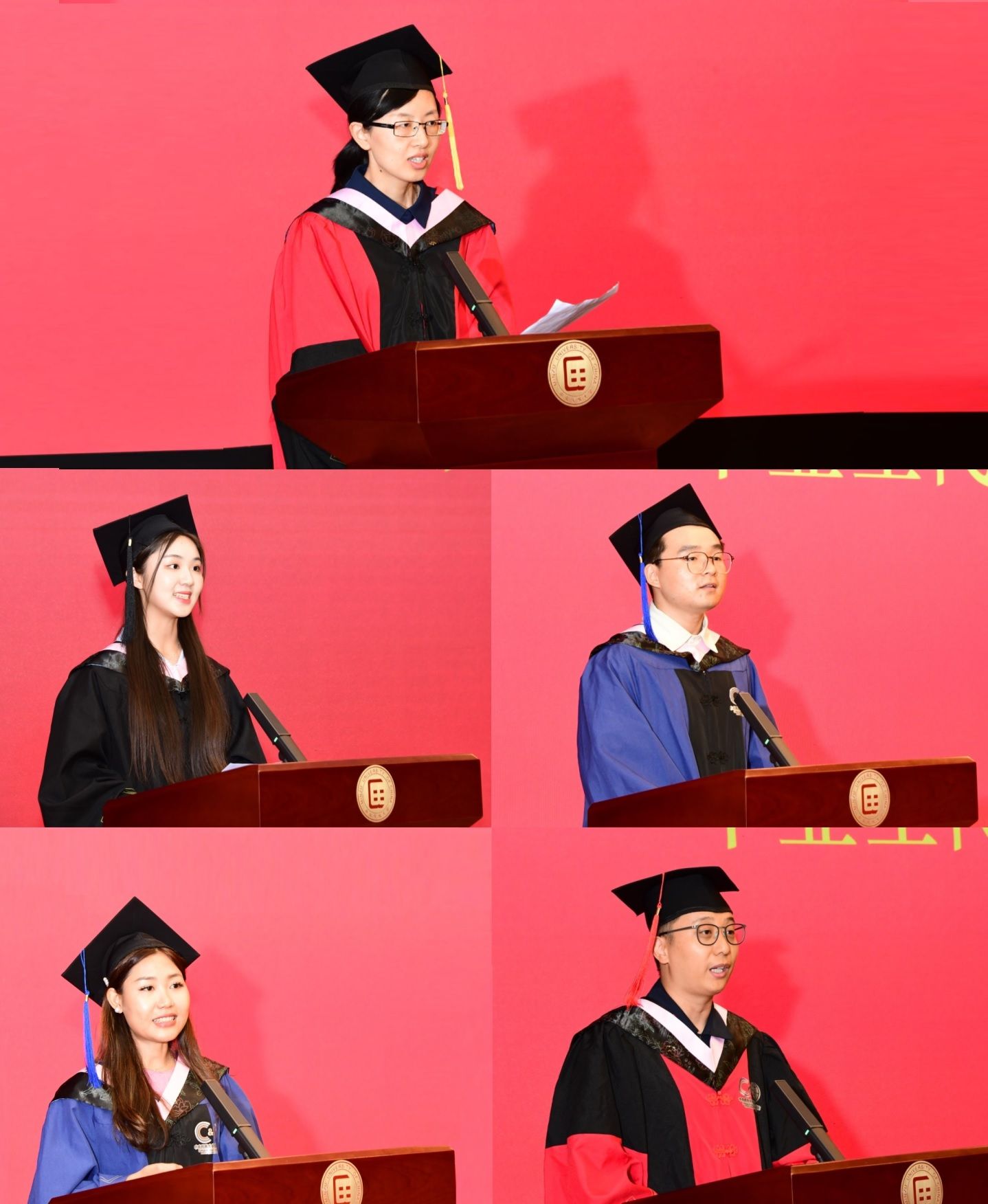 2021级本科毕业生代表朱芳慧以诗意的语言见证了新校区的变迁,回顾了在丰台校区的学习生活,将青春记忆喻为“一本难懂又热烈的书”,并发出“过尽千帆初心不改”的邀请。硕士毕业生代表王博威以幽默自省的口吻,将毕业前的紧张备考比作“偿还英国的松弛”和完成“NPC任务”,深情回忆课堂互动与同窗情谊,呼吁大家带着“各美其美,美美与共,知行合一”的民大精神勇敢前行。缅甸籍硕士毕业生岳美玲的分享尤为动人。她回顾了疫情期间的孤独、家乡政变的震撼、手术时师友的温暖,以及家乡地震后民大师生给予的关怀。她表示“幸福藏在平凡日常中”,要珍视校园生活的点滴,永远“做自己”。博士生代表祝鹏讲述了自己从新疆莎车县扶贫一线跨越“三千公里教育鸿沟”来91暗网