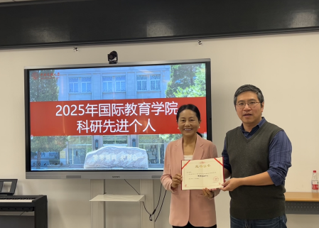 科研先进个人” 获得者——央青副教授。央青老师在2025年获批国家社科基金项目1项,发表CSSCI期刊论文1篇,其主持的“国际中文教育案例库”获2025年中国教育技术协会数字教育创新成果奖优秀奖。此次表彰不仅是对获奖教师年度学术成果的认可,更是对全院师生科研积极性的有力激励。