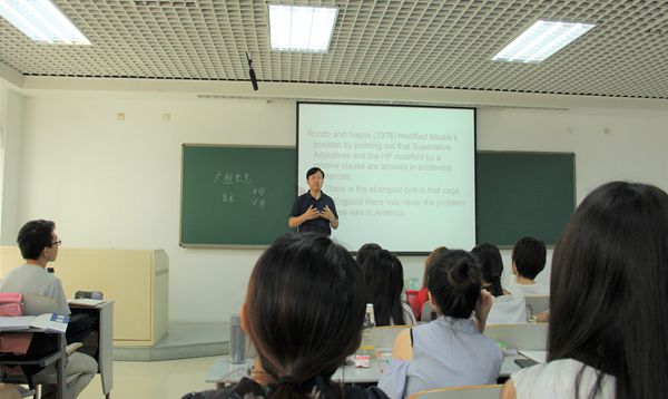 8月16日,刘乐宁教授就“词语搭配”问题做了汉英对比分析。在讲座中,刘教授从语义能力、词义扩展与搭配关系、非词语化与搭配、语体对词语搭配的影响、语义韵与搭配几个方面展开了具体论述,并充分举例帮助学生理解。刘教授指出,一个词语义范围越宽,它与其他词搭配的能力就越强,中英皆如此。因此在日后的教学实践中,我们要特别注意一些简单且使用范围大的词语,做好中英对比分析,以预测学生可能出现的搭配偏误。
