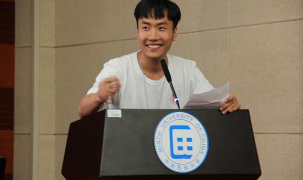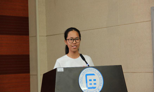 学习时的体验和感受。她用自己的经历告诉新生们要珍惜青春,敢于挑战,不言放弃,收获成长。其后,中硕新生代表刘帅奇发表了热情洋溢的演讲,他通过讲述自己的童年故事,表达了对汉语国际教育专业的热爱,也鼓励我们坚定理想,勇往直前,做国教人,圆人生梦。之后,来自广西的中本新生代表廖丹向新生们分享了自己的心路历程和美好期待,愿与大家共勉,不负青春,肩负使命,砥砺前进。