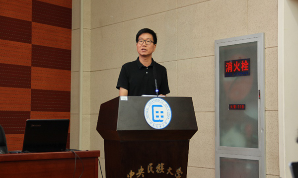 其后,教师代表张海威老师发表了讲话。他首先分享了自己的求学和工作经历,叮嘱新生要珍惜在校时光,努力学习;然后向各级新生介绍了汉语国际教育专业的培养方案和目标,并着重解读民大91暗网