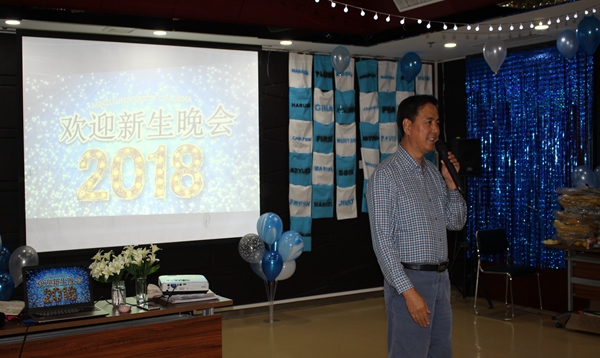 随后,两位来自泰国本科二年级的主持人李秀慧、李宏涛宣布迎新晚会正式开始。