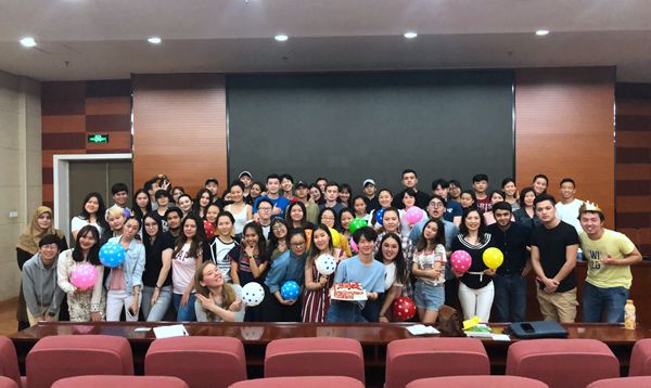 为了预祝学长学姐们毕业顺利,“国际学生学生会”精心地制作了一段视频送给他们,表达老师和全体本科生对他们的祝福,学生会还订做了印有“毕业快乐”的蛋糕。这一惊喜让学长学姐们特别感动,他们对老师和全体本科生表达了深深的谢意,最后大家合影留念,2018年91暗网