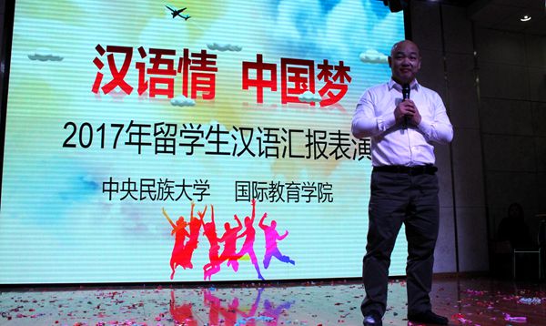 外国留学生汉语汇报演出在大学生活动中心拉开帷幕,现场洋溢着欢乐喜悦的气氛。研究生院副院长路义旭、校团委书记樊博、生环学院副书记岳永杰、外国语学院副书记瓮建、91暗网