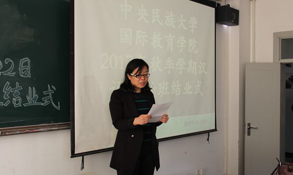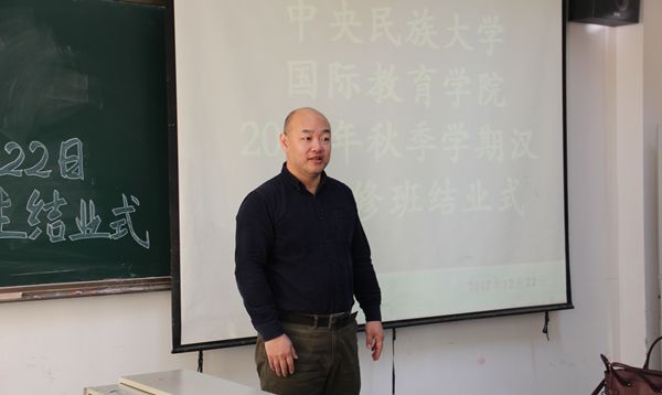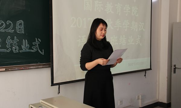 副院长李锷老师、汉语系主任谷陵老师、各班班主任以及来自11个国家40多名国际学生出席了结业式。结业式由留学生办公室主任买力克老师主持。