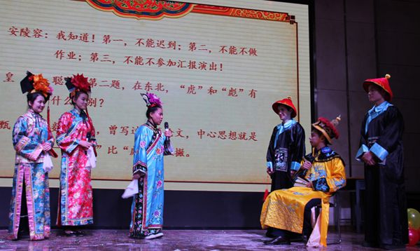 终于,高级组闪亮登场。语言生8班乘着《泰坦尼克号来民大》,重现了经典影片的熟悉场景,加入了中国元素和诙谐幽默的语言;语言生9班讲述了《臭鞋与爱情》的故事,我们熟悉的童话人物灰姑娘说上了中国话,似乎也变成了敢爱敢恨的北京大妞,令人喜爱;本科二年级二班带来的《相爱穿梭千年》,将外国古典的罗密欧与朱丽叶与中国奇幻的大话西游完美地融合在一起,成为一道经典“大餐”;最后,本科二年级一班展开了一场《奇幻辩论赛》,在“读万卷书,行万里路”中我们该选择哪一个?他们用生动的表演形式告诉了我们属于他们的答案。
