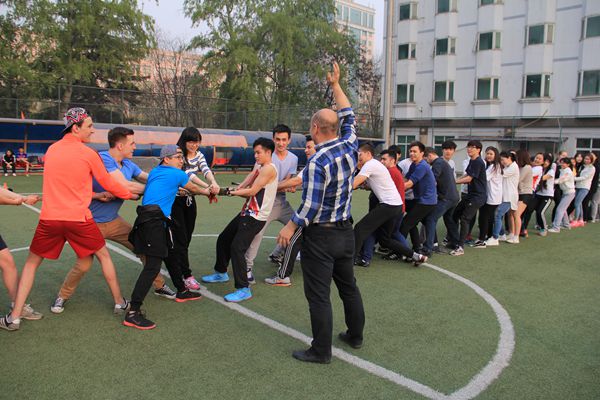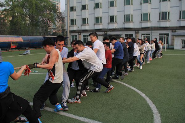 的学生分成两组,由李锷副院长宣布开始,大家使尽全力,有节奏的喊着口号,把绳子向自己的一方拔去。比赛必有输赢,但最终的结果远没有参与的喜悦重要,同学们在这次趣味运动会中深刻的体会到了“友谊第一、比赛第二”的含义。