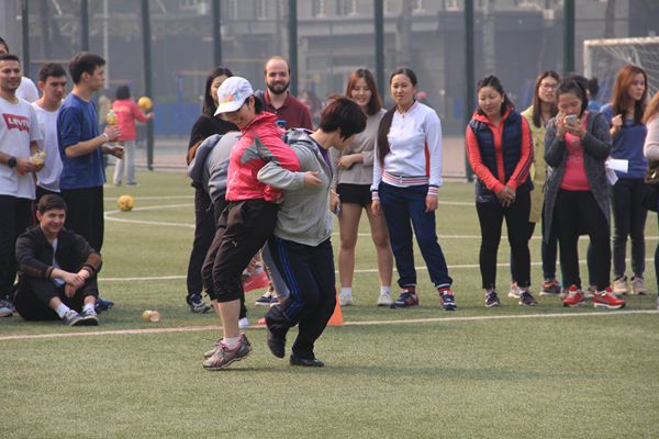 第四个项目是最近非常流行的撕名牌,也是这次趣味运动会期待度最高的项目,流行无国界,所有国家的留学生都积极参与到这项游戏中来,大家分成红黄两队,在一定的场地内撕掉对方背后名牌最多的队伍获胜。大家采用各种“战术”,场面极其热闹。一场下来虽然很累,但大家的脸上是抑制不住的欢乐。