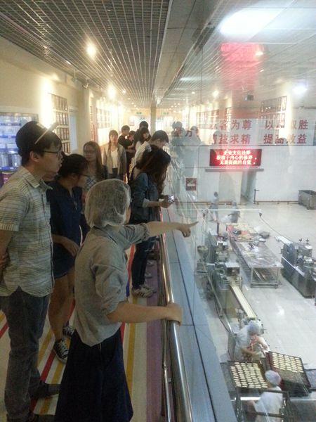 和北京信息科技大学的40多名外国留学生,怀着好奇和兴奋的心情来到具有百年历史的北京著名老字号——义利食品厂。他们详细参观了老字号的博物馆和食品生产线,还在中秋前夕,亲自动手制作中国的佳节特色食品--月饼,活动结束后满载自己制作的月饼和文化体验回校。