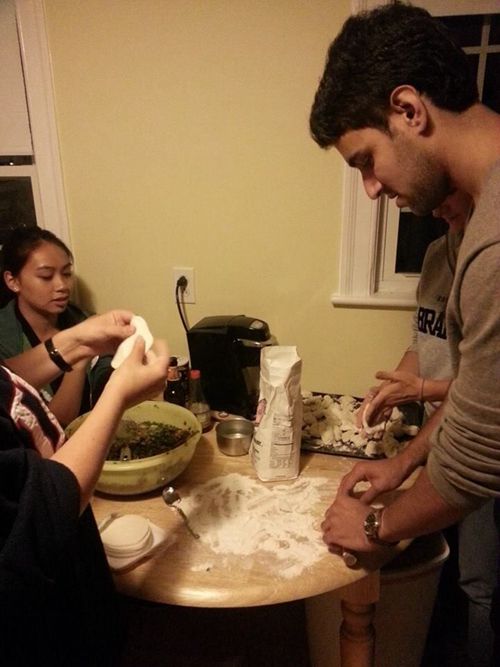 龙宇笑教当地人“包饺子”
