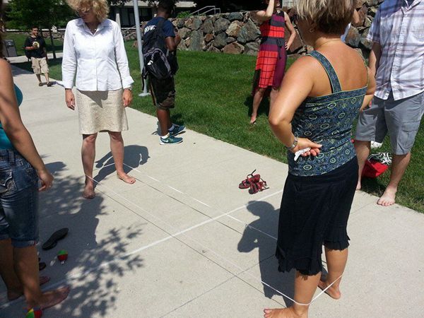 龙宇笑教当地人“跳皮筋”