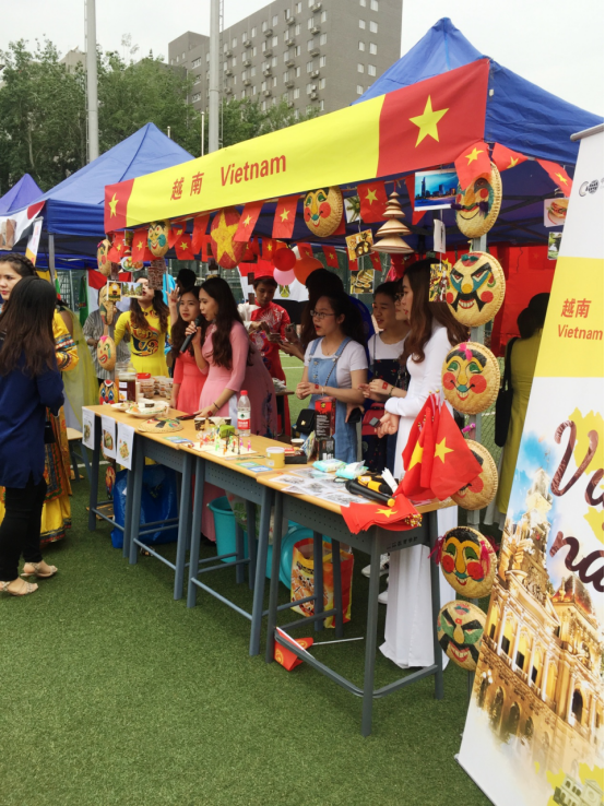 在各国文化展示区,中国、蒙古、俄罗斯、美国、日本、印度尼西亚、印度、埃及、刚果布、吉尔吉斯斯坦、哈萨克斯坦、乌兹别克斯坦、塔吉克斯坦、土库曼斯坦、巴基斯坦、越南、缅甸、泰国、韩国、乌克兰和法国21个国家的学生设置了各自国家的展台。他们身着本国传统服饰,热烈欢迎参观者并与他们进行互动游戏。学生们精心准备了文字介绍、特色美食、精美手工艺品和小礼物等,向前来参观的师生展示着自己国家和民族的语言、风情和文化。中国学生带来了她们小时候的回忆——小零食和套圈游戏,还有写福字、你来比划我来猜等小游戏,参与者可以通过游戏获得小奖品;蒙古学生带来了精致的马鞍和现场书法;俄罗斯同学带来的巧克力蛋糕得到了极大的追捧,很快便销售一空;泰国同学带来的特色饮品西米露香甜可口,受到了广大学生的欢迎;日本展台前门庭若市,学生亲身制作的乌冬面深受大家欢迎;埃及同学身穿的本民族服装吸引了很多人的注意,大家纷纷与他们合影留念……各国学生亲手制作的美食最受热情的参观者追捧。国际文化节小护照也是学生们的巧思之一,持有者拿着小护照纷纷到各展台盖各国的印章,集满21个印章,就可以参加抽奖了。最后,国际文化节在大家的依依不舍中落幕,期待明年再见。