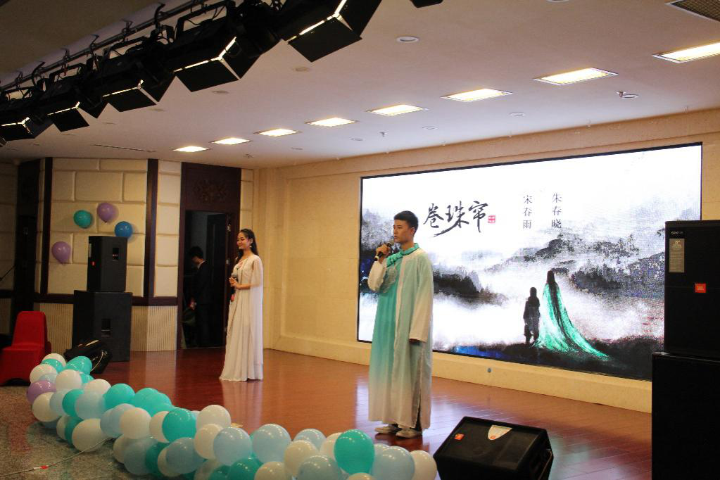 歌曲串烧通过新颖的组合方式,将几首中外歌曲串在一起,用欢快的演出形式拉开了迎新晚会的的序幕。
