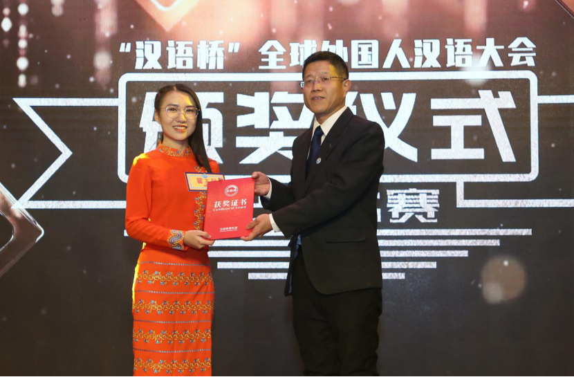 缅甸学生瞿玉民凭借高超的汉语水平和沉着冷静的临场发挥,最终脱颖而出,一举夺魁。