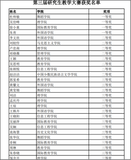 附件一:第三届研究生教学大赛获奖名单