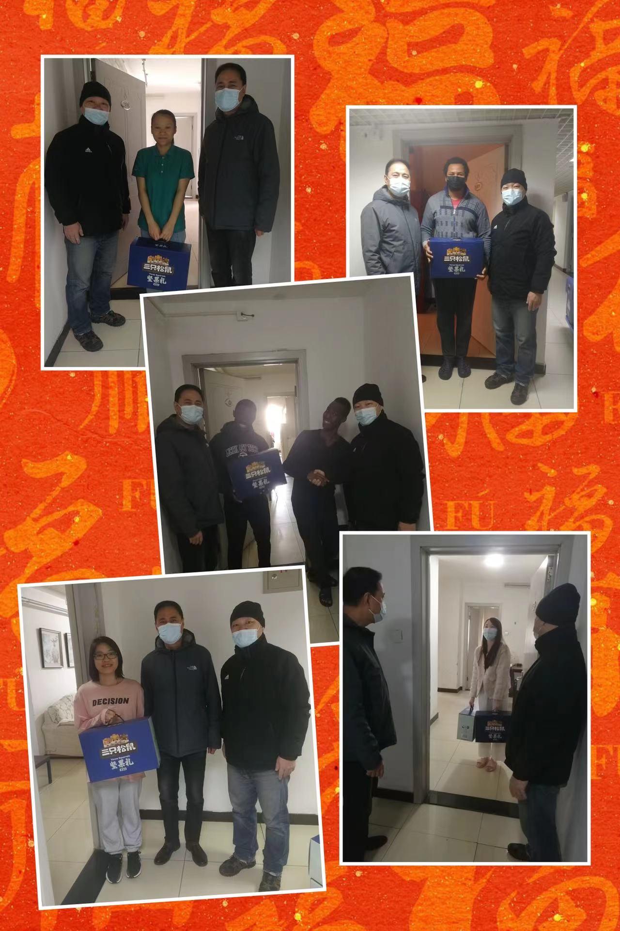 学院领导到每一个国际学生的宿舍与学生亲切交谈并送上新春的美好祝福,在了解了同学们学习生活情况后,周铁海书记表示寒假期间学院将全力做好留校国际学生的日常服务与疫情安全保障工作,希望同学们按照疫情防控的要求,减少非必要外出,做好个人防护,合理安排好假期生活,不断充实自己,加强体育锻炼,同时向家人介绍中国的疫情防控工作和学校的保障措施,让家人放心。国际学生们纷纷对学院的关怀表达感谢,表示虽然因为疫情不能回国与家人团聚,但在校期间一直受到老师们的关心与照顾,时刻都能感受到家一般的温暖。