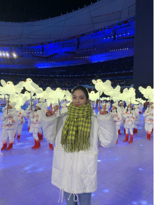 谈及成为冬奥开幕式演员的这一经历带来的感想,刘璐回应:“我见到了各种各样性格的人,学习他们的优秀品质,和他们一起留下了宝贵美好的回忆;看见世界,彼此接近,拓展自我,体会到了和世界人民一起向未来的美好状态。”张钰敏表示:“很荣幸也很开心能够参加2022年北京冬奥会开幕式,感谢学校能够给我们提供这样的一个机会去参与其中。这是我20岁‘生逢其时的荣幸’,从9月份导演组到学校来面试,经历了一轮又一轮的复试,直到今天我仍然觉得何其有幸,能够从那么多同学当中被导演选中。当在鸟巢看到五星红旗冉冉升起,冰雪五环破冰而出,奥运圣火在鸟巢点亮夜空这一幕幕时,我觉得4个月的辛苦付出,一切都值得了。”