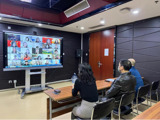 学院领导在海淀校区会议室线上参与活动