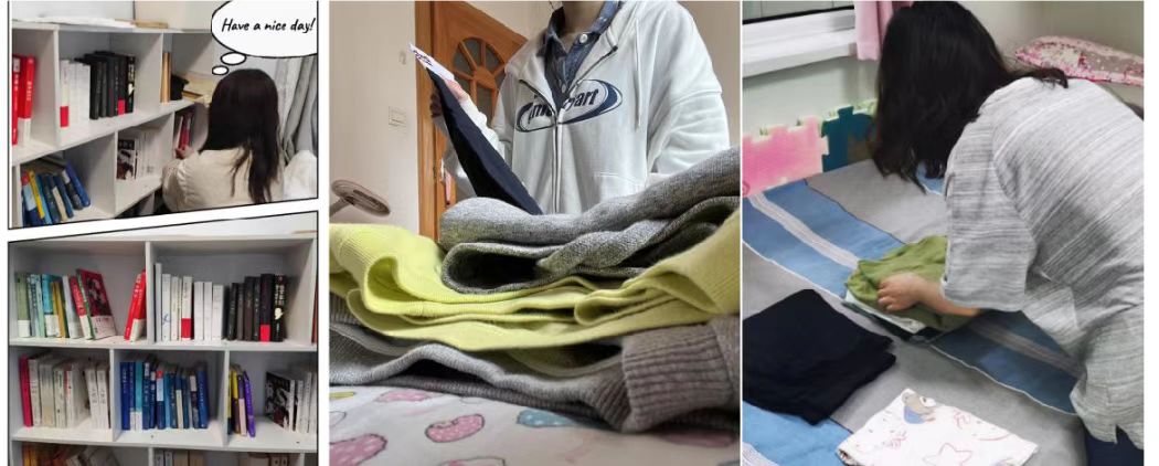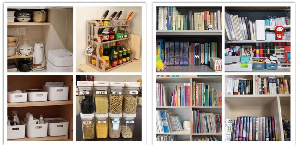 2021级本科生付琳:在劳动实践中能够获取经验。之前对于书架的整理我都是竖着放,占用空间很大,放不下太多书。本次家居收纳中我重新整理所需书籍,选择横放的方式,这样简洁美观且实用。