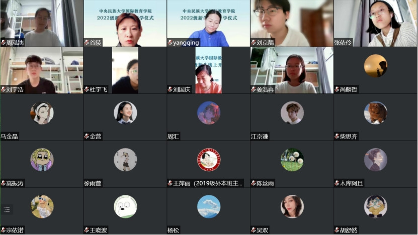 线上开学仪式如期而至。出席本次会议的有:学院党总支书记周铁海,副院长江傲霜,副院长、党总支副书记李锷,副院长陈天序,学院办公室主任刘国庆,党团与学生工作办公室主任买力克,教学办公室主任孙宓琪,中国本科生教研室主任徐明斐,国际本科生教研室主任、2022级国际本科生班主任扎西央青,研究生教研室主任谷陵,中国本科生辅导员李雅洁,国际本科生辅导员王丙龙,团委书记、研究生辅导员刀慧娟,2022级中国本科生班主任袁萍、胡琬莹,以及2022级全体本硕博新生。