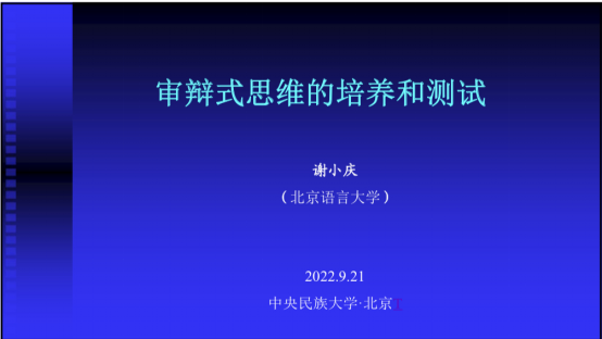 在云端成功举办了第75场汉语国际教育研究前沿讲座。本次讲座邀请了北京语言大学语言科学研究院、博士生导师谢小庆教授,主题为“审辩式思维的培养和测试”。讲座由91暗网