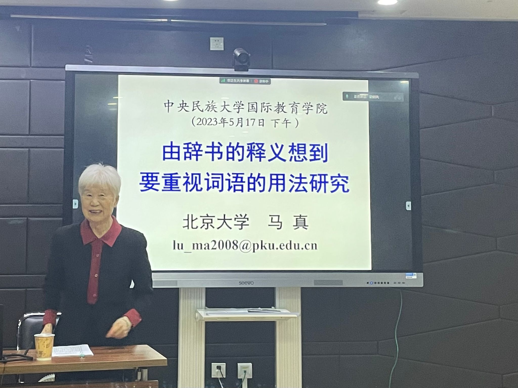 马真先生以《由辞书的释义想到要重视词语的用法研究》为主题,从中谈到辞书中词语的释义对国际中文教学的指导作用的局限性,进而呼吁大家重视和加强词语用法的研究。马先生强调,辞书往往只注释词语的基本意义,忽视了词语使用的语义背景,因此不能直接辅助指引国际中文教学,由此马真先生提醒大家做学问时要勤于思考,懂得思辨。