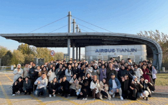 随后,老师们又带领学生前往位于滨海新区的空客天津A320飞机总装线进行参观。该企业是空中客车在全球的第三条A320飞机总装线,也是欧洲以外的首条民用飞机总装线,成功运营15年来完成总装并交付超过600架A320系列飞机。在工作人员的带领下,中外师生进入了飞机的9号总装车间,认真聆听了工作人员的介绍,了解了飞机部件被水运至天津港后组装的整个过程。同学们感受到天津这个城市作为国际化的窗口,不仅拥有宝贵的历史文化遗产,同时也充满了经济飞速发展的活力。