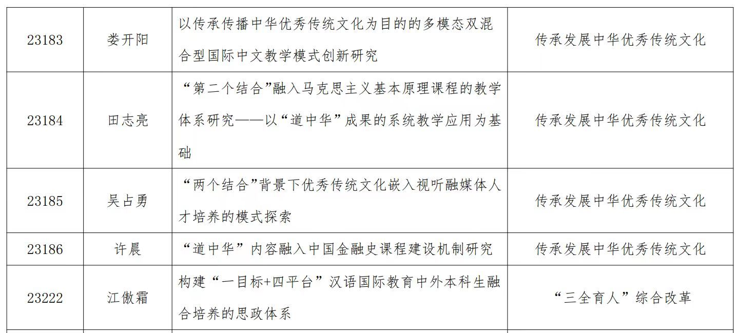 江傲霜副院长的“构建‘一目标+四平台’汉语国际教育中外本科生融合培养的思政体系”和娄开阳教授的“以传承传播中华优秀传统文化为目的的多模态双混合型国际中文教学模式创新研究”喜获立项。