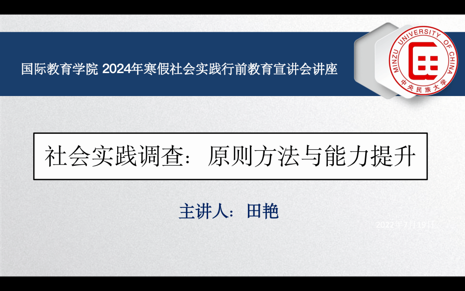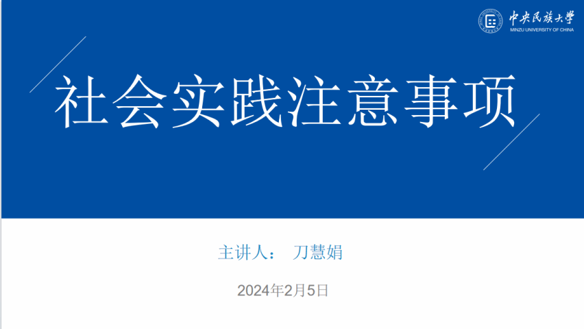团委科创实践部公示学院2024年寒假社会实践立项名单,充分肯定立项团队上一阶段的工作成果。随后,学院副教授田艳老师受邀进行了题为《社会实践调查:原则方法与能力提升》的行前说明讲座,向大家分享调研经验、指导调研方法。讲座分为三个部分:社会实践原则、社会实践调查方法以及社会实践能力提升。田老师首先介绍了社会实践原则,接着详细分析了四种社会实践调查方法,并将社会实践能力分类分别进行了说明,并特别针对几种形式成果的创作进行了案例分析。田老师表示,希望同学们“用脚步丈量祖国大地,用双眼感知时代变迁”,用自身实践去认识社会、了解社会,为社会发展做出自己的贡献。田老师的讲座内容充实,极具针对性和启发性,使得同学们对整个调研过程、调研方法等都有了更加深入的认识。