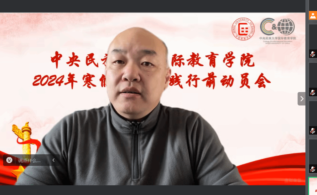 团委科创实践部面向寒假社会实践立项团队的全体成员开展2024年寒假社会实践行前动员会。本次会议以线上会议形式进行,由学院团委科创实践部薛琛婧主持。