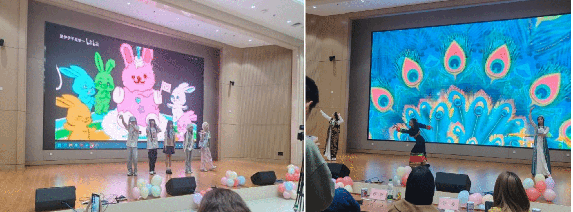 在中外学生联欢交流环节,同学们以中文为纽带,通过自我介绍、互动游戏、才艺展示和文化交流等精彩纷呈的活动,深入开展交流,增进了对彼此的了解。在现场洋溢的欢声笑语中,舞蹈表演的优雅舞姿与合唱表演的激昂旋律相得益彰,共同将活动推向了高潮。