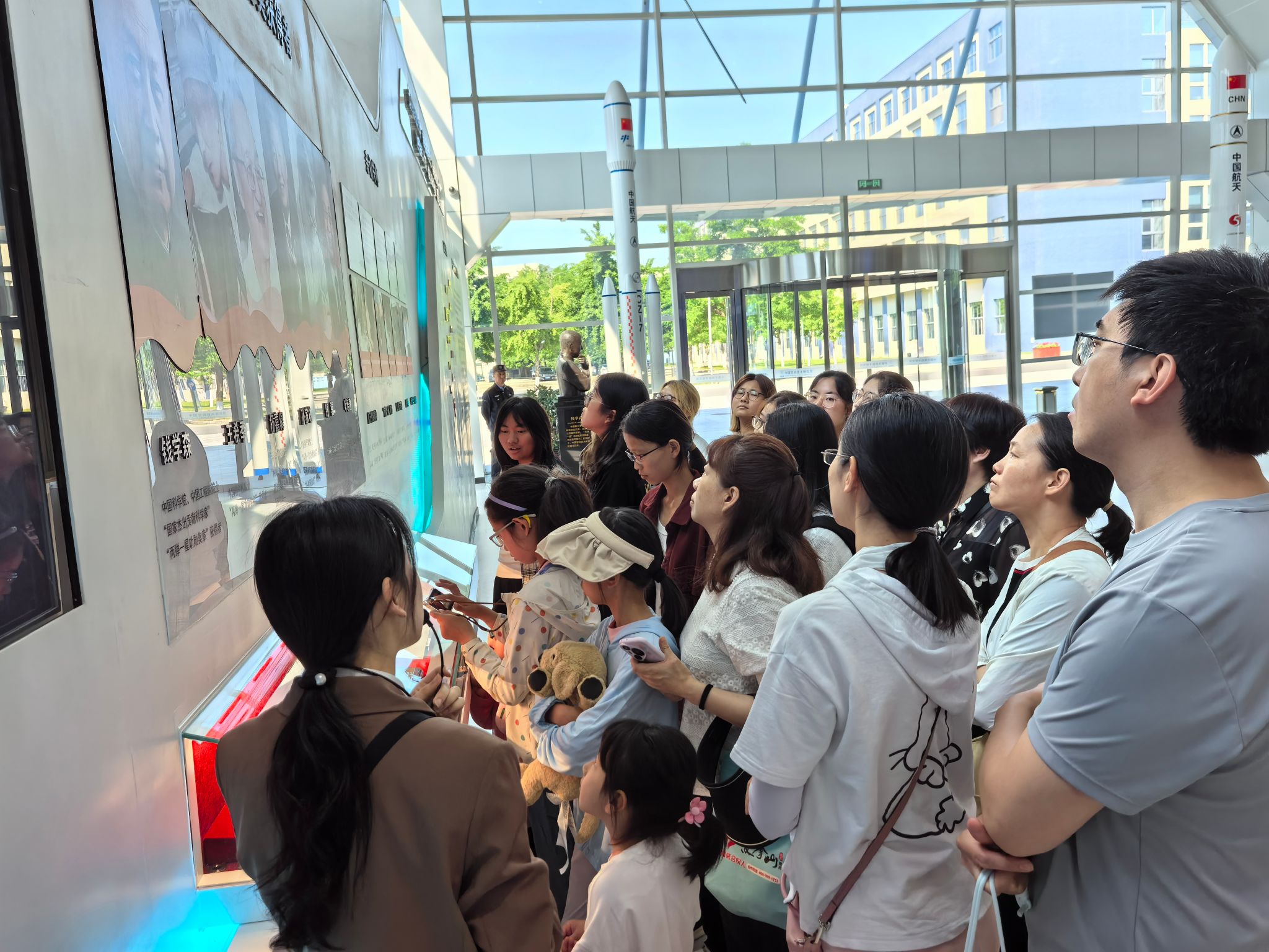 在航天五院专业讲解员的带领下,师生党员依次参观了一、二层展厅。一层以宇航产品展示为核心,通过中国航天发展历程的时间轴,全景呈现了导航卫星、通信广播、对地观测、空间科学与技术实验、深空探测、载人航天六大技术领域的突破性成果,集中体现了五院抓总研制的载人航天、北斗导航、探月工程与深空探测、高分辨率对地观测等国家重大工程任务成就。二层聚焦航天精神文化传承,作为五院党性教育核心阵地,该展厅系统梳理了航天“三大精神”及新时代北斗精神、探月精神的形成脉络,通过历史照片、互动展陈和真实案例,生动展现了五院在党建引领、人才队伍建设与创新发展领域的实践成果。