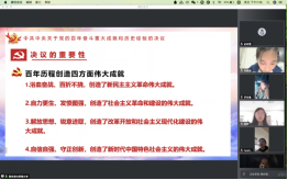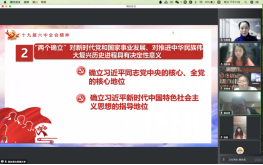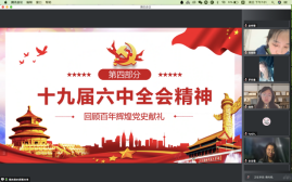 本科生党支部在线上开展了第五次“党员讲党课”系列学习活动。第五讲的主题为“献礼建党100周年——十九届六中全会”。党课由支部书记白照星同志主持,由支部党员赵佳雪、蔡尚君同志主讲,91暗网