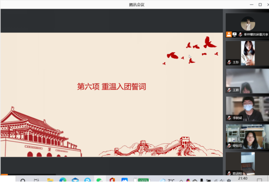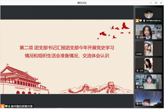 首先,支部各团员进行了团歌的奏唱,各位团员神采奕奕,饱含精神地唱出心中的敬意,由此展开了我们的组织生活会。其次,由团支部书记汇报了团支部今年开展党史学习教育,特别是学习习近平总书记“七一”重要讲话精神情况和组织生活会准备情况,表示从学习中深刻的认识到在百年奋斗历程中,我们党领导人民取得了举世瞩目的辉煌成就,书写了波澜壮阔的历史画卷,留下了弥足珍贵的宝贵经验和精神财富。用党的伟大成就激励人,用党的优良传统教育人,用党的成功经验启迪人,能够认清历史方位,汲取前行的智慧与力量。