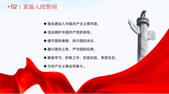 在团支部书记王婧怡的带领下,2020级团支部全体团员一起重温了入团誓词,唤醒了每一位团员的团员意识,回想起当年成为团员时在庄严的团旗下许下的承诺。重温誓词,我们依旧热血沸腾。怀揣梦想与希望,承担责任与荣光,我们始终肩负着共产主义赋予我们的光荣使命!