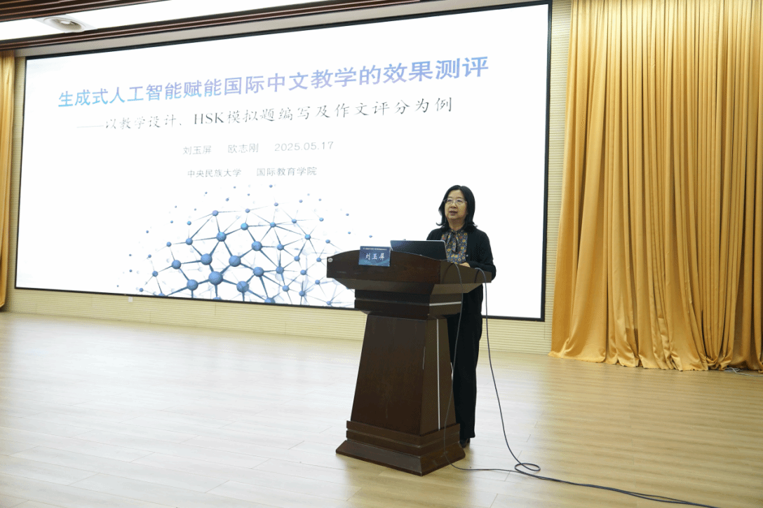 刘玉屏教授分享了题为《生成式人工智能赋能国际中文教学的效果测评》的研究。该研究在阐述生成式人工智能关键技术、使用模式、效果测评的基础上,对大语言模型赋能国际中文教师教学活动展开了实证研究,最后就如何在教育教学中使用生成式人工智能给出了具体建议。
