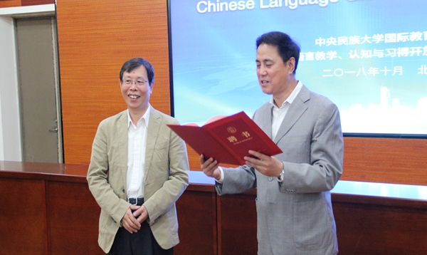 党总支书记周铁海还为研究中心聘请的顾问专家崔希亮教授、李泉教授、赵杨教授颁发了聘书。开幕式由语言教学、认知与习得开放研究中心主任刘玉屏教授主持。