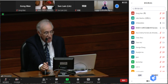 本届国际研讨会由欧洲汉语教学协会和葡萄牙米尼奥大学主办,世界汉语教学学会、世界汉语教育史研究会和澳门圣约翰大学合办,米尼奥大学孔子学院、科英布拉大学孔子学院协办。会议采取线上线下相结合的方式,分为8个主题,四个分会场,并增设两场圆桌讨论,分别讨论欧洲外语水平评估标准与考试体系的关系以及欧洲汉语教学的现状分析与发展议题。会议吸引了来自中国、法国、英国、德国、日本、瑞典、意大利、罗马尼亚等全球各地的汉语专家和学者前来参会,陆商隐Luisa Paternicò (意大利)、吴英成(新加坡)、张新生(英国)、顾安达Andreas Guder (德国)、刘英林、李亚男等分别做了主旨发言。