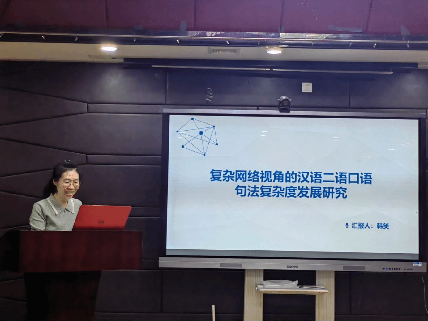 师生就“汉字教学及测试的国别化”等问题与主讲人进行了深入讨论,就《复杂网络视角的汉语二语口语句法复杂度发展研究》中“研究对象选取”以及“数量、多样性、精密性”等句法复杂度网络建构等问题作了进一步探讨。