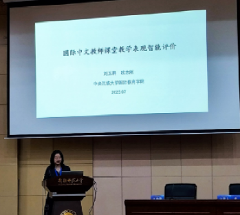 刘玉屏教授题为《国际中文教师课堂表现智能评价体系研究》的主旨报告从人工智能化解国际中文教育本土化、多元化、均衡化“三化”问题的理论视角,阐述了智能评价体系构建以及AI磨课系统工程化实践的步骤与方法。