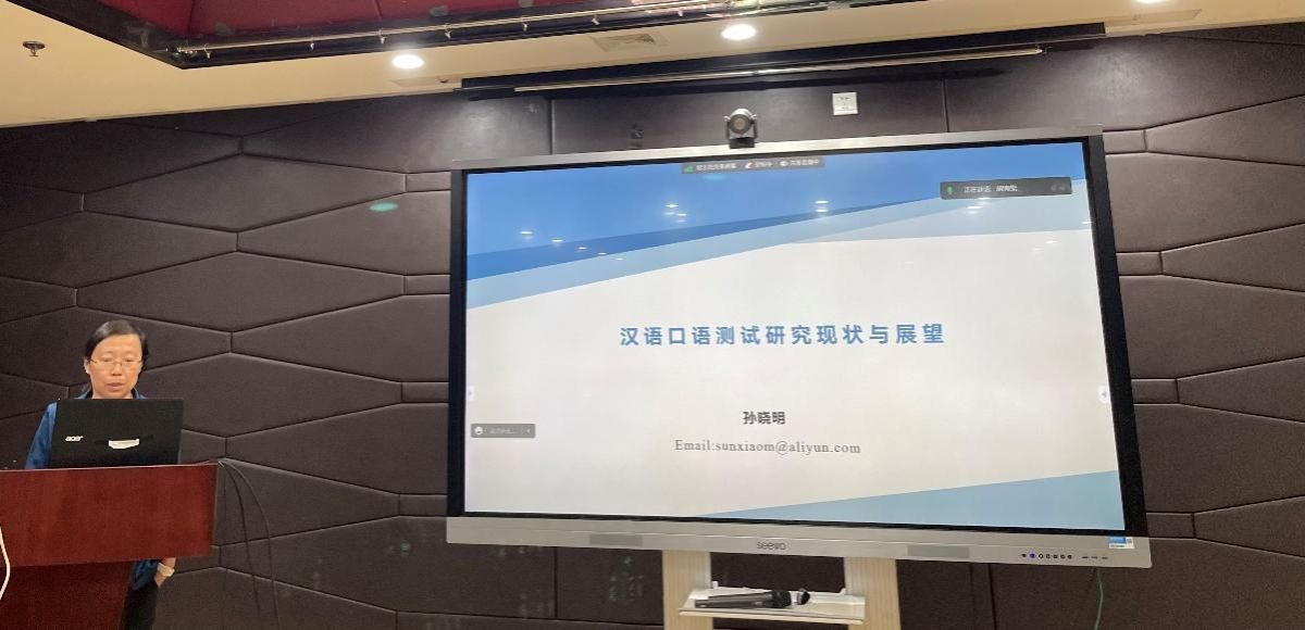 孙晓明老师首先以“汉语口语测试研究现状与展望”为题,分享了口语测试的原则、类型、任务、影响口语评估的因素、口语测试方法的评分标准和方法等,并对口语测试进行了展望,指出真实性和互动性是贯穿测试过程的核心原则。随后,孙老师就师生关心的“课题申报”分享了自己宝贵的经验,指出了在课题申请中的注意事项以及要避免的问题。