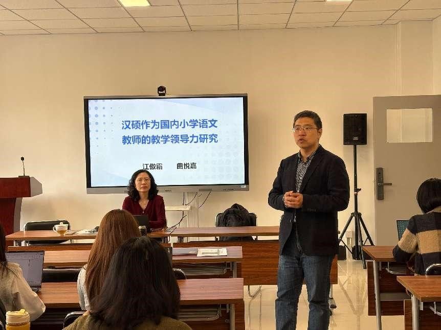 江傲霜副院长分享了题为《汉硕作为国内小学语文教师的教学领导力探究》的研究。该研究基于质性范式,结合领导力相关理论,深入分析了汉语国际教育专业硕士在小学语文教学中教学领导力的多方面表现及影响因素,为提升小学语文教学质量和汉教硕士培养提供了新思路。