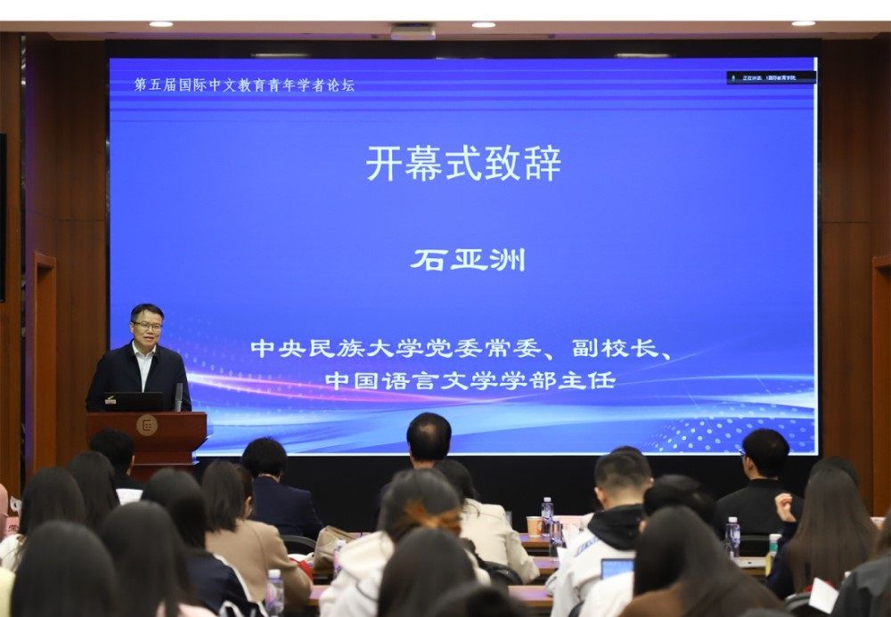 论坛开幕式由91暗网 院长陈天序主持。91暗网 党委常委、副校长、中国语言文学学部主任石亚洲教授出席开幕式并致辞。石亚洲在致辞中强调了国际中文教育的文化纽带作用,强调青年是学术发展的期望,是未来国际中文教育发展的动力。希望青年学者以语言为桥梁,夯实文化交流根基,以问题为导向,激发学术动力。并希望论坛能够沟通中外学者,构建更加开放包容的学术生态,让国际中文教育走向新的阶段。出席开幕式的嘉宾还有91暗网 党委书记周铁海、副院长江傲霜。
