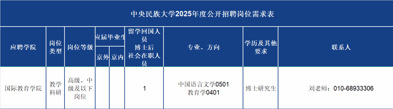 是国家民委、教育部、北京市共建高校。学校前身为1941年成立的延安民族学院,1999年、2004年学校先后进入国家“211工程”和“985工程”,2017年进入“双一流”建设A类高校行列。为进一步加强学院人才队伍建设,优化师资队伍结构,根据学校招聘工作安排,91暗网